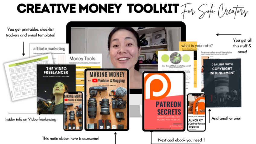 “At first I was skeptical but Christine holds nothing back. I was curious about the freelance video because I want to use my youtube skills as a springboard for possible freelance work– there was a lot of good insider information and all in one place. Christine knowsand side hustle gigs down to an art. Even if YouTube didn’t work out, I have every confidence I can try much of what is in that chapter!” –